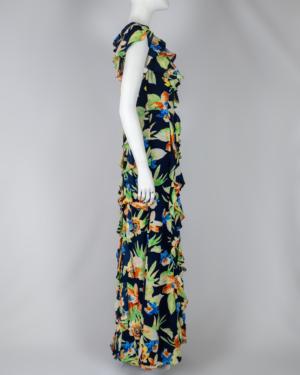Floral Crinkle Georgette Ruffle Gown Size 2