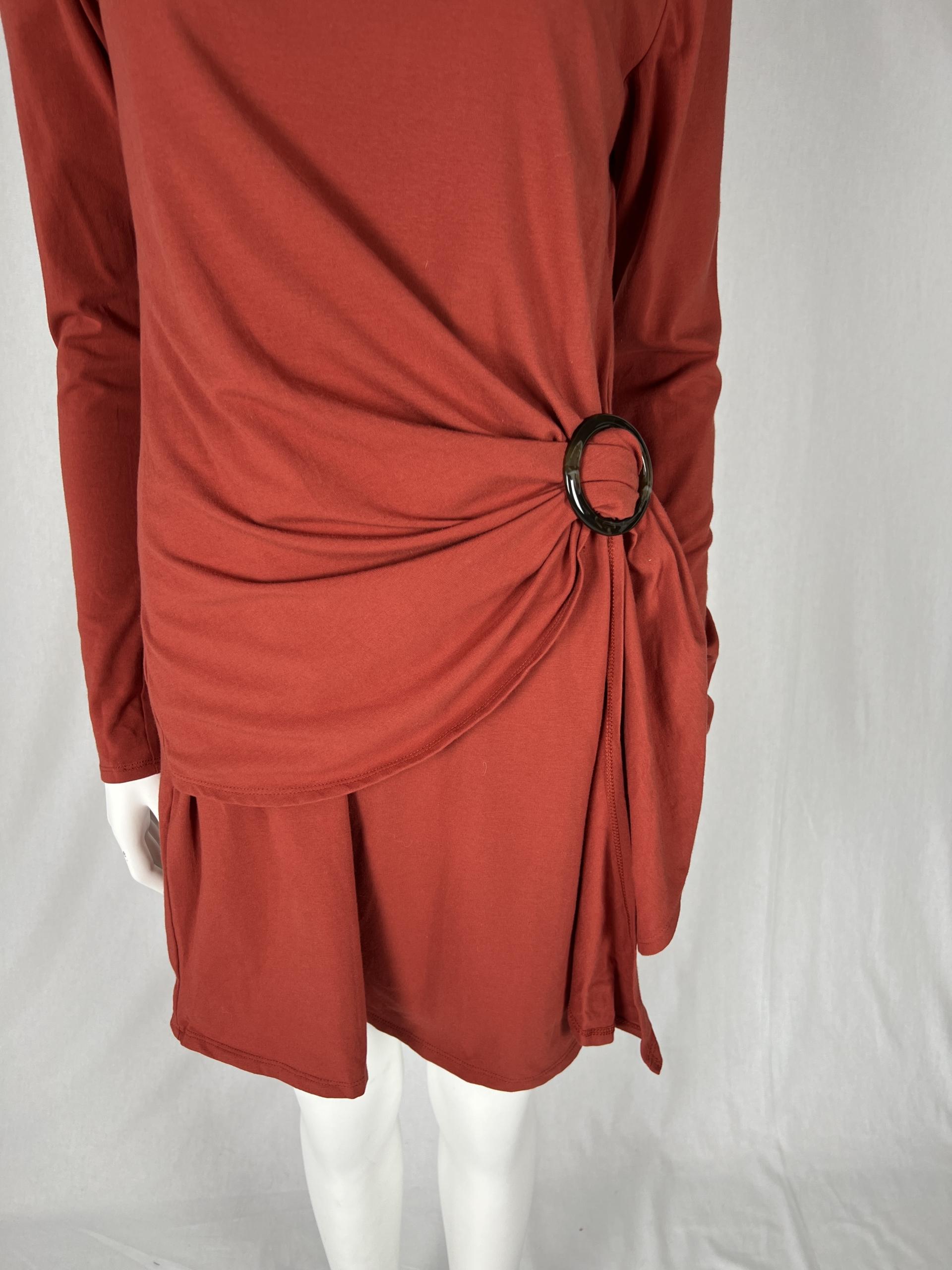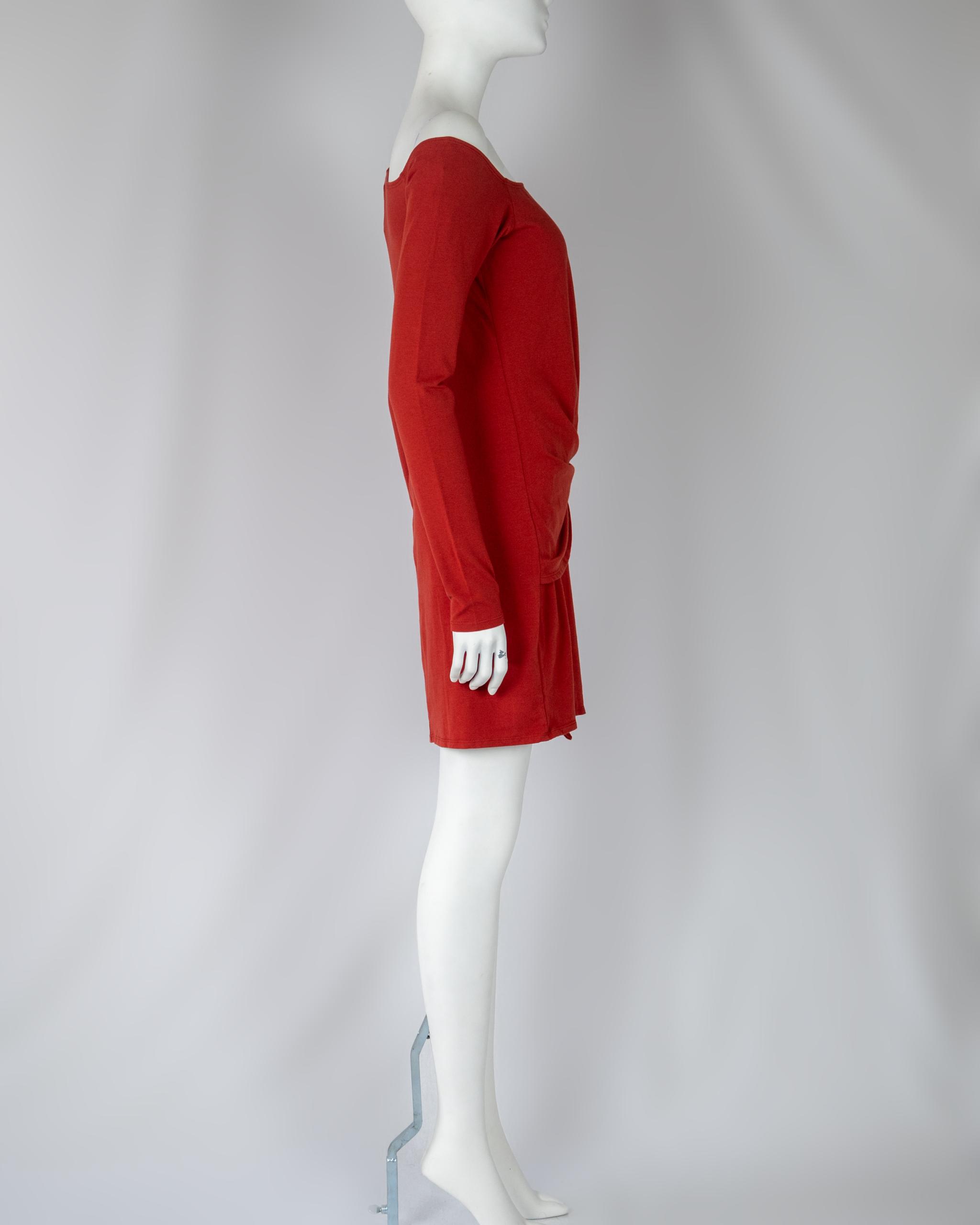 Go for the wow-factor in this body-hugging dress from Free People, with an asymmetrical neckline that grazes down one shoulder and a draped belted design at the front.