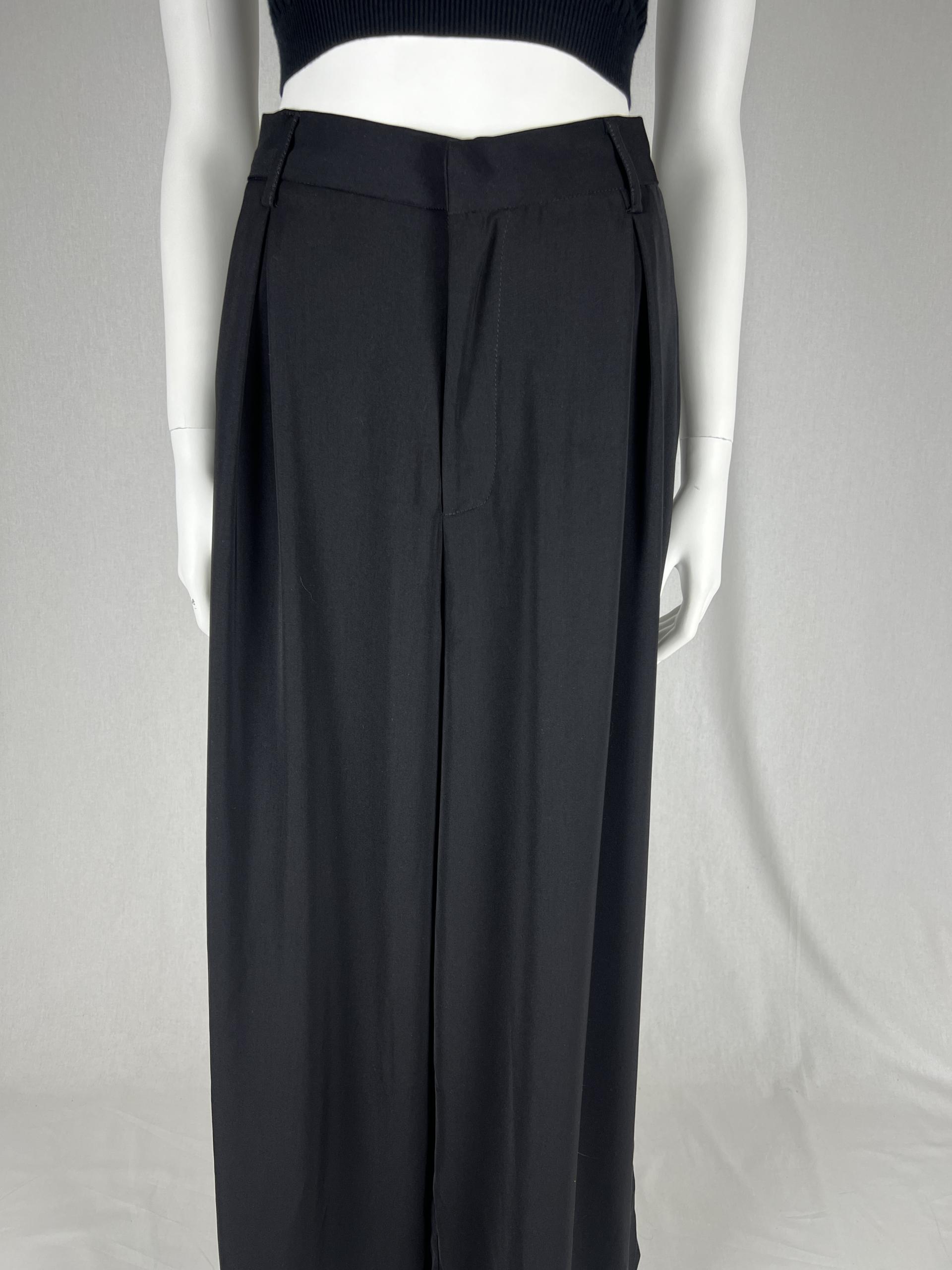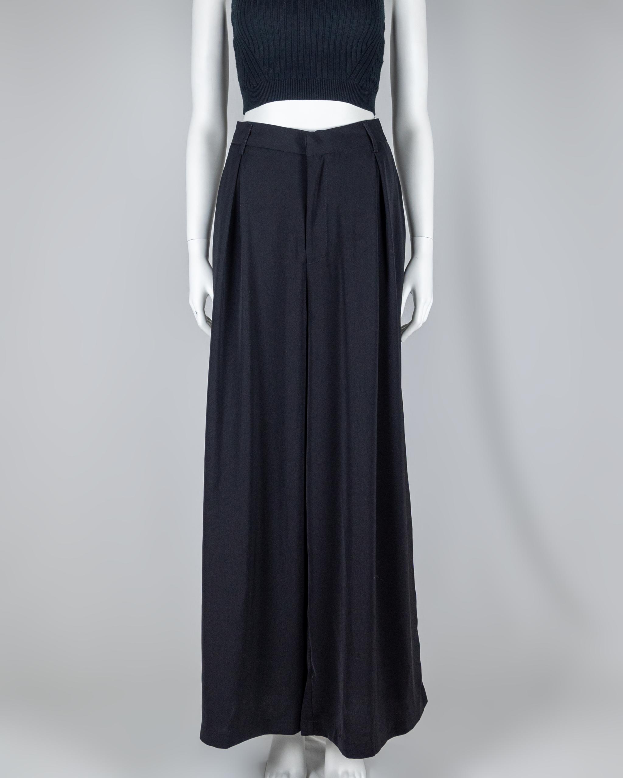 These black wide-leg palazzo pants are a stylish and versatile piece of clothing designed to offer both comfort and elegance. These pants have wide, flowing legs that extend from the waist down to the floor, creating a dramatic and sophisticated silhouette. The wide-leg design provides ample movement and breathability, making them ideal for both casual and formal occasions