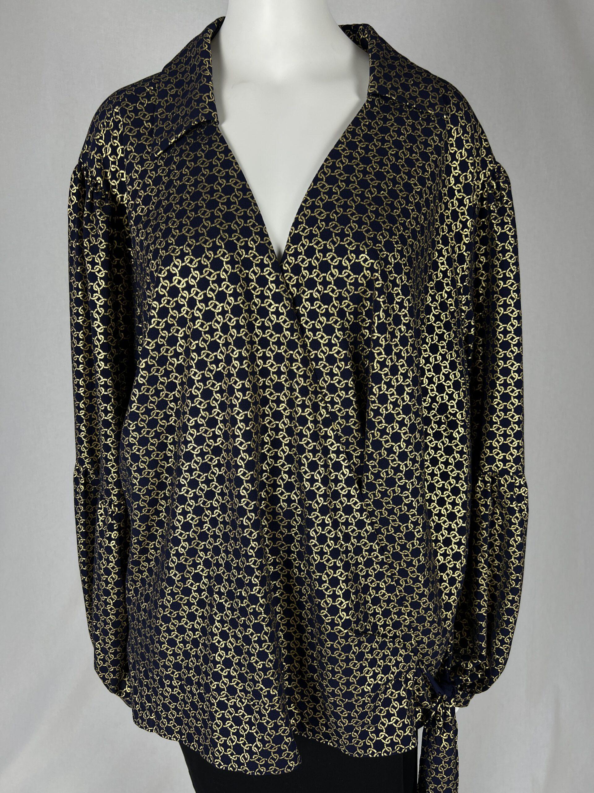 A metallic chain print covers lightweight crepe, giving the MICHAEL Michael Kors wrap top a stunning new look.