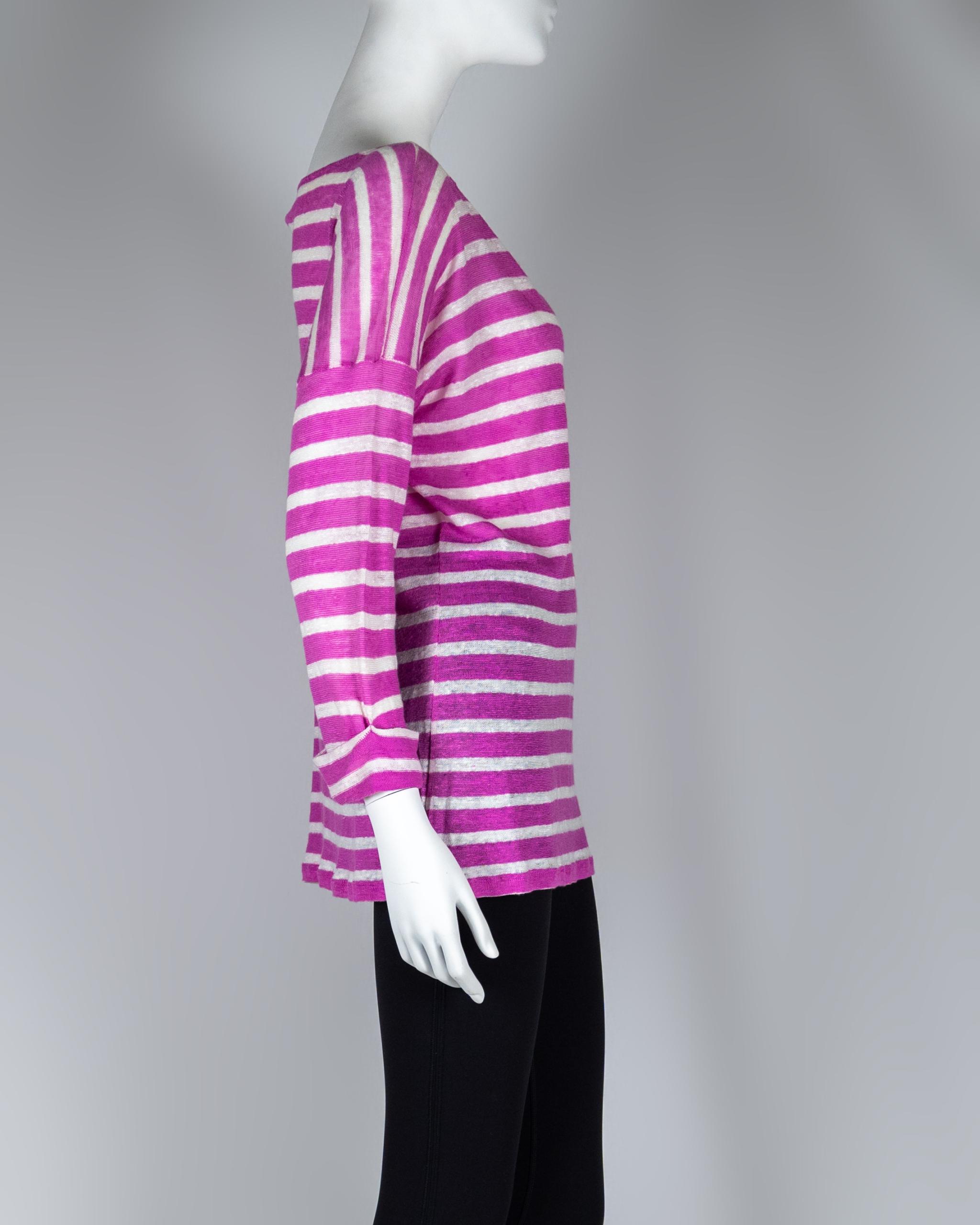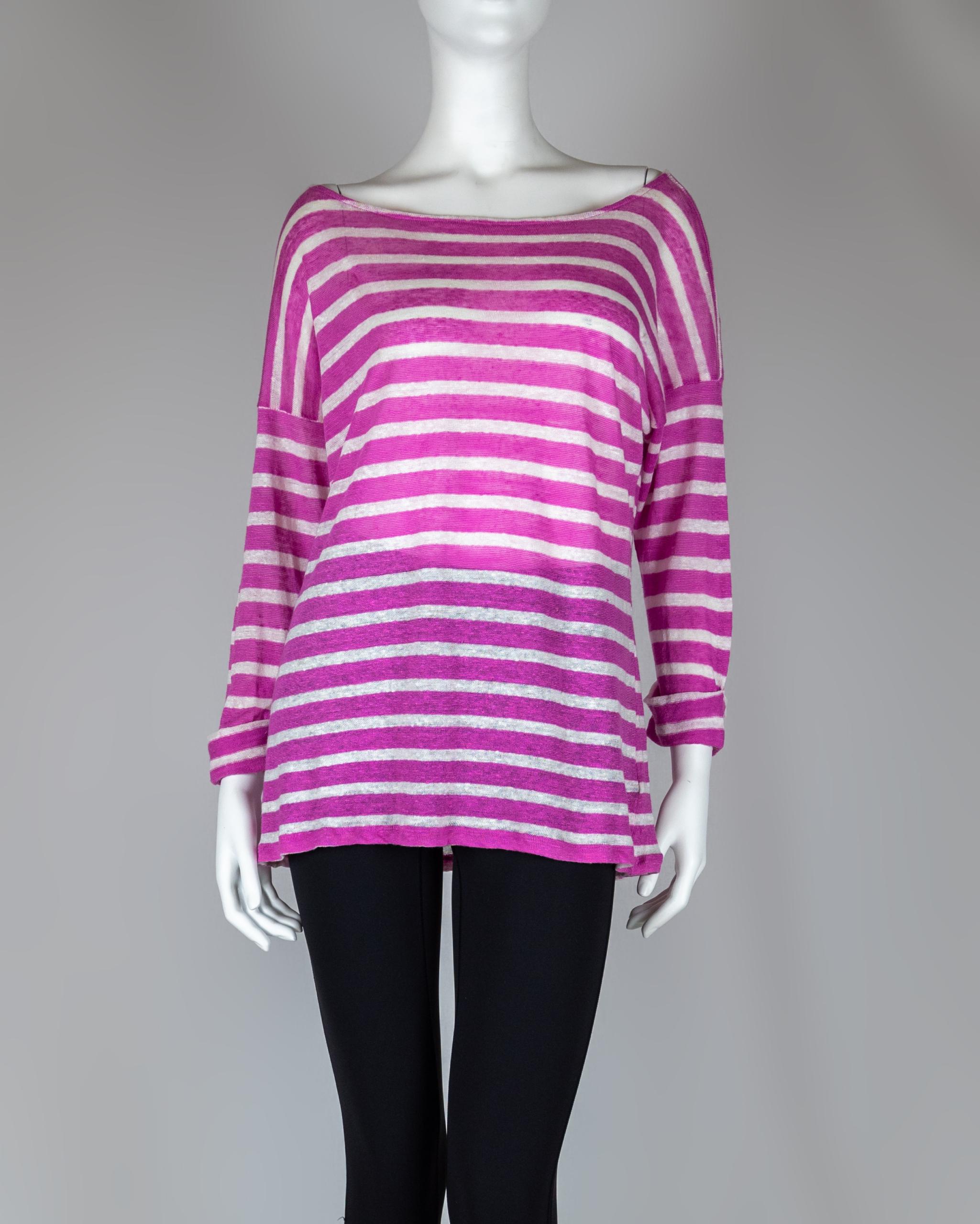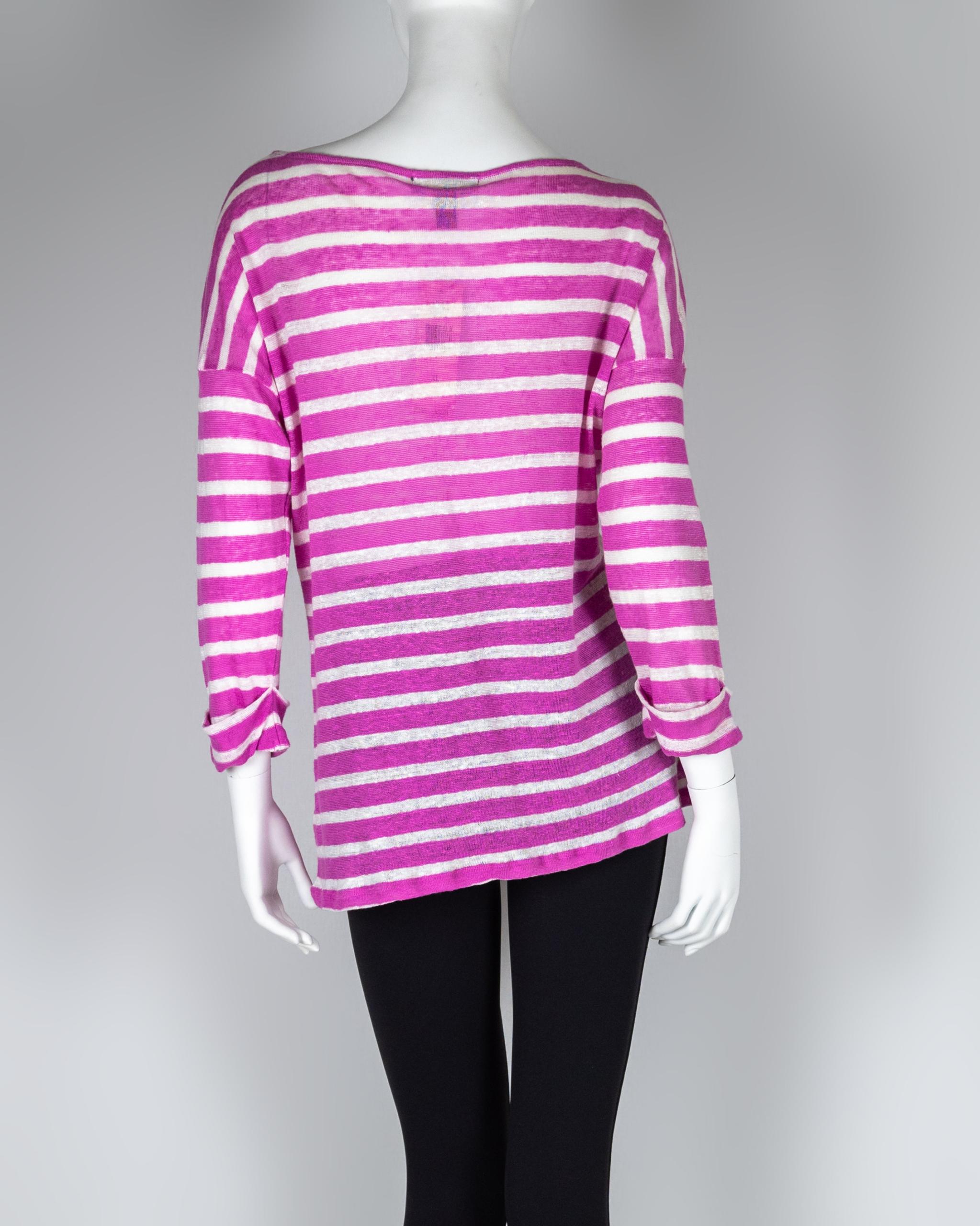100% Linen Striped Lightweight 3/4 Sleeve Top Size XL