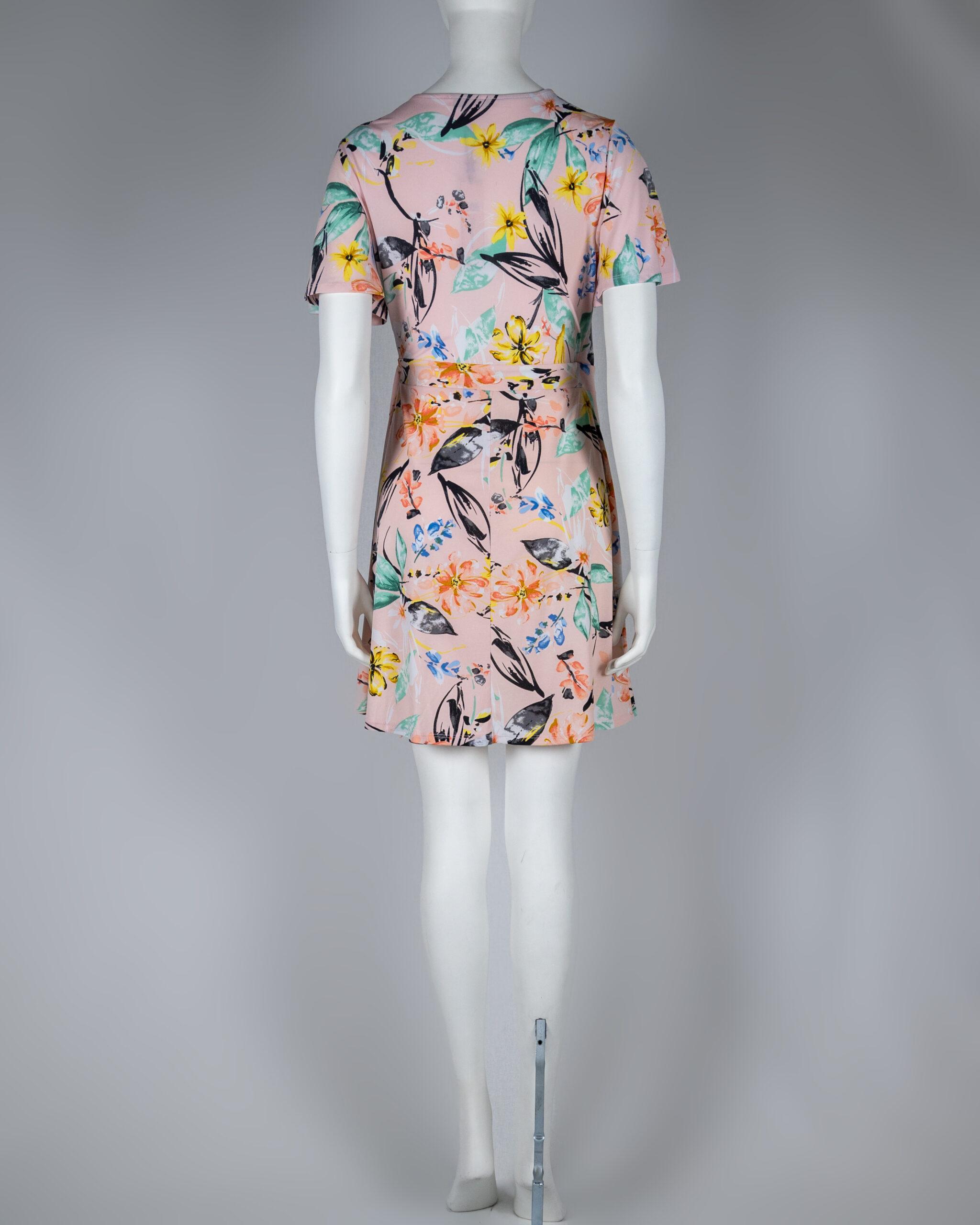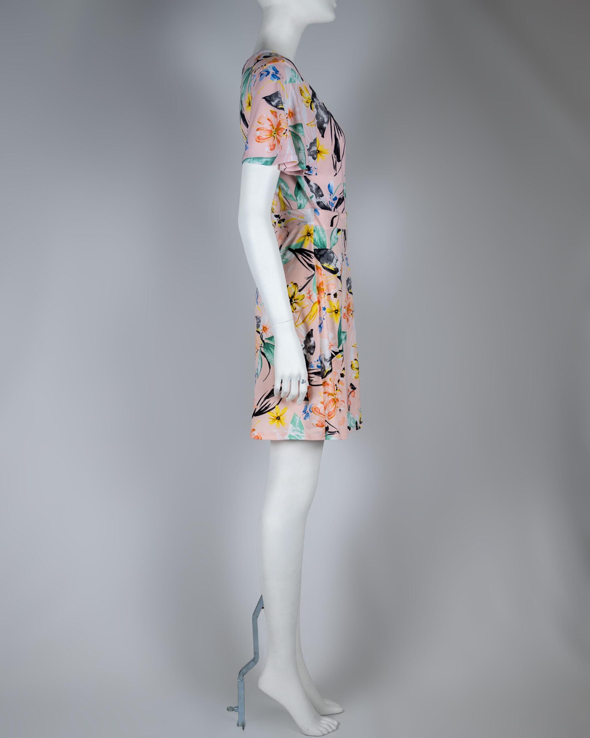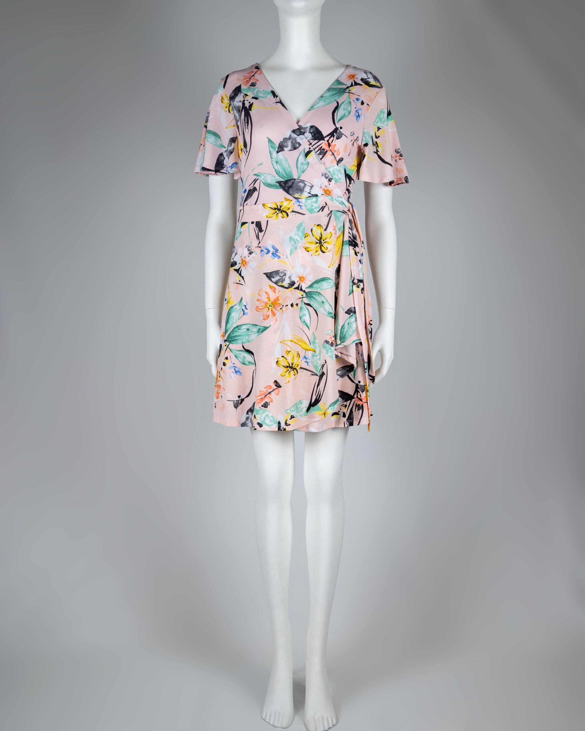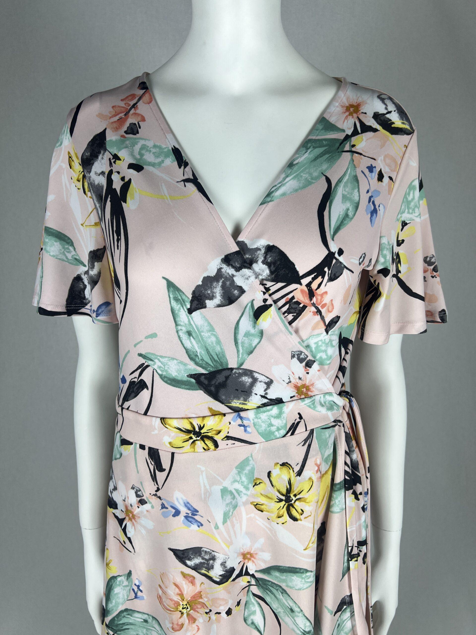 Flatter your figure in this wrap dress designed with a side-tie closure and a vibrant floral print.