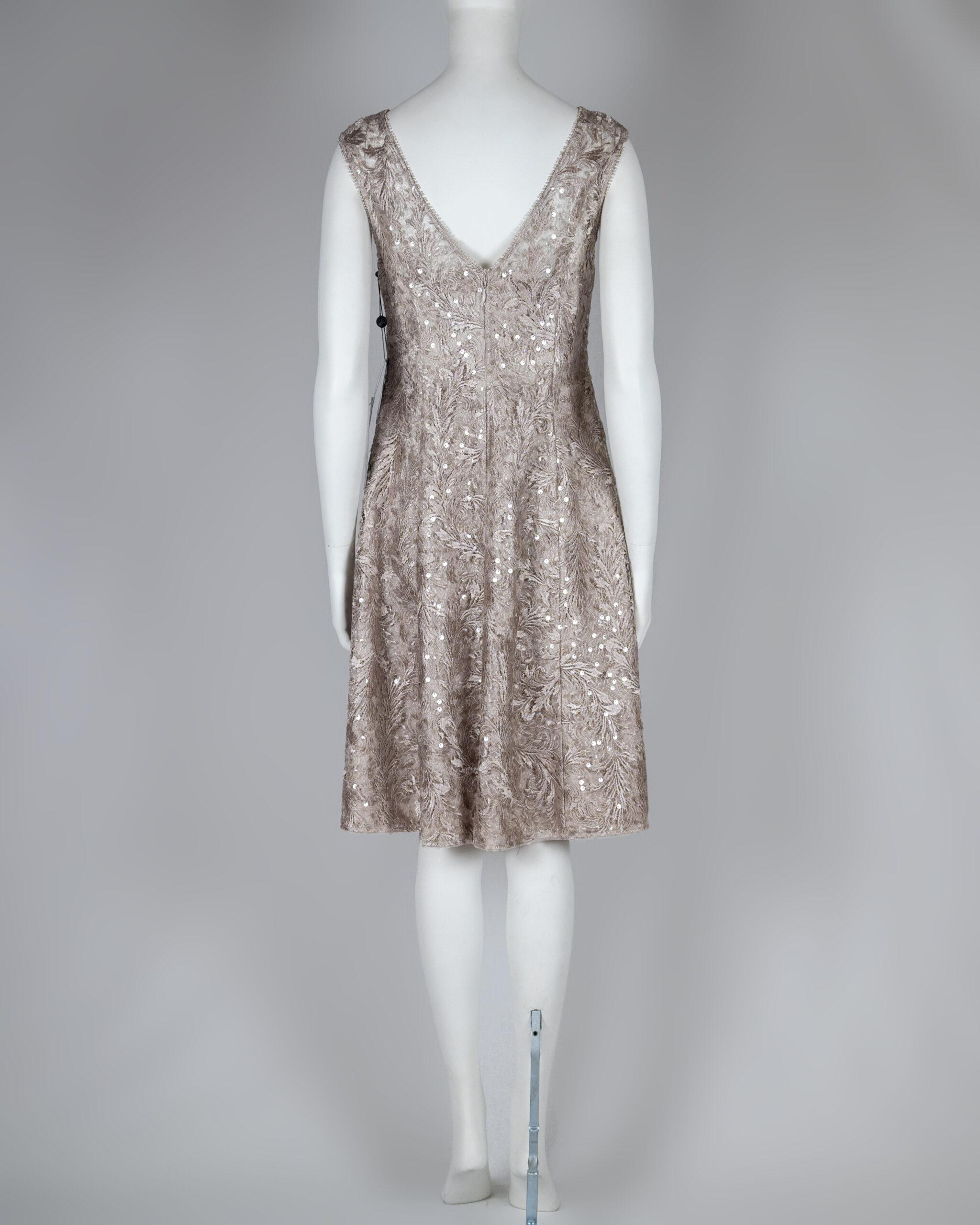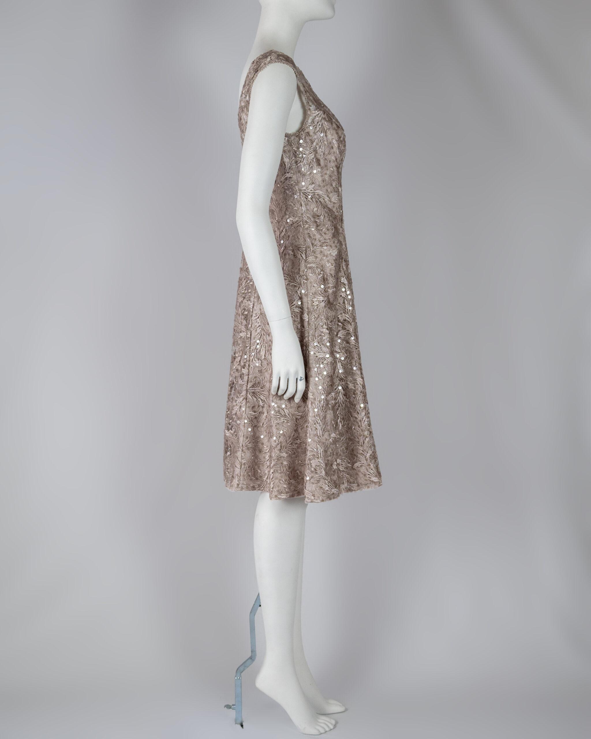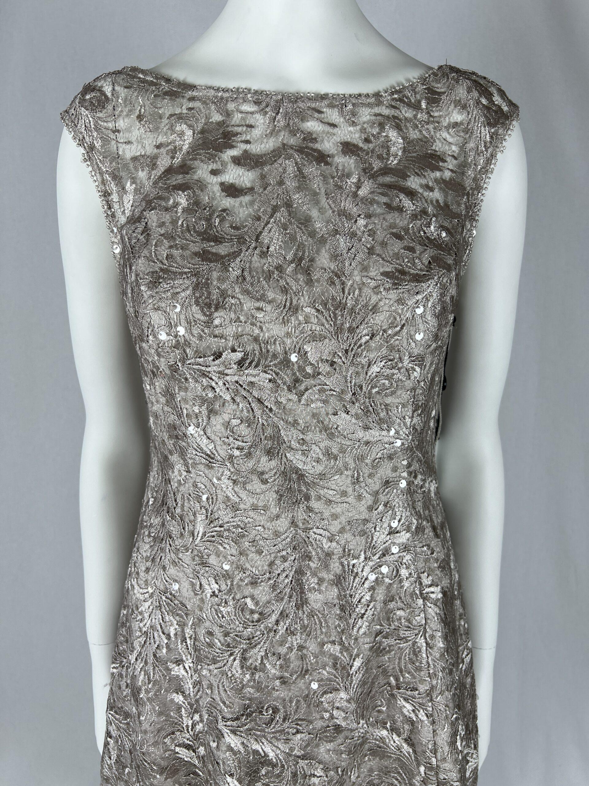 An iconic sleeveless fit-and-flare silhouette, accented with refined floral embroidery and an illusion neckline. The soft, mid-length skirt flares gently. We love this dress for the mother of the bride at a bridal shower or rehearsal dinner. This will be your new wedding guest go-to!