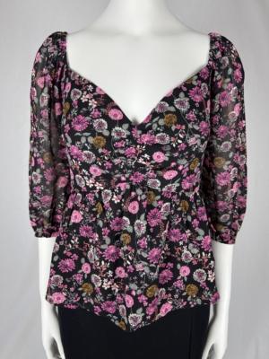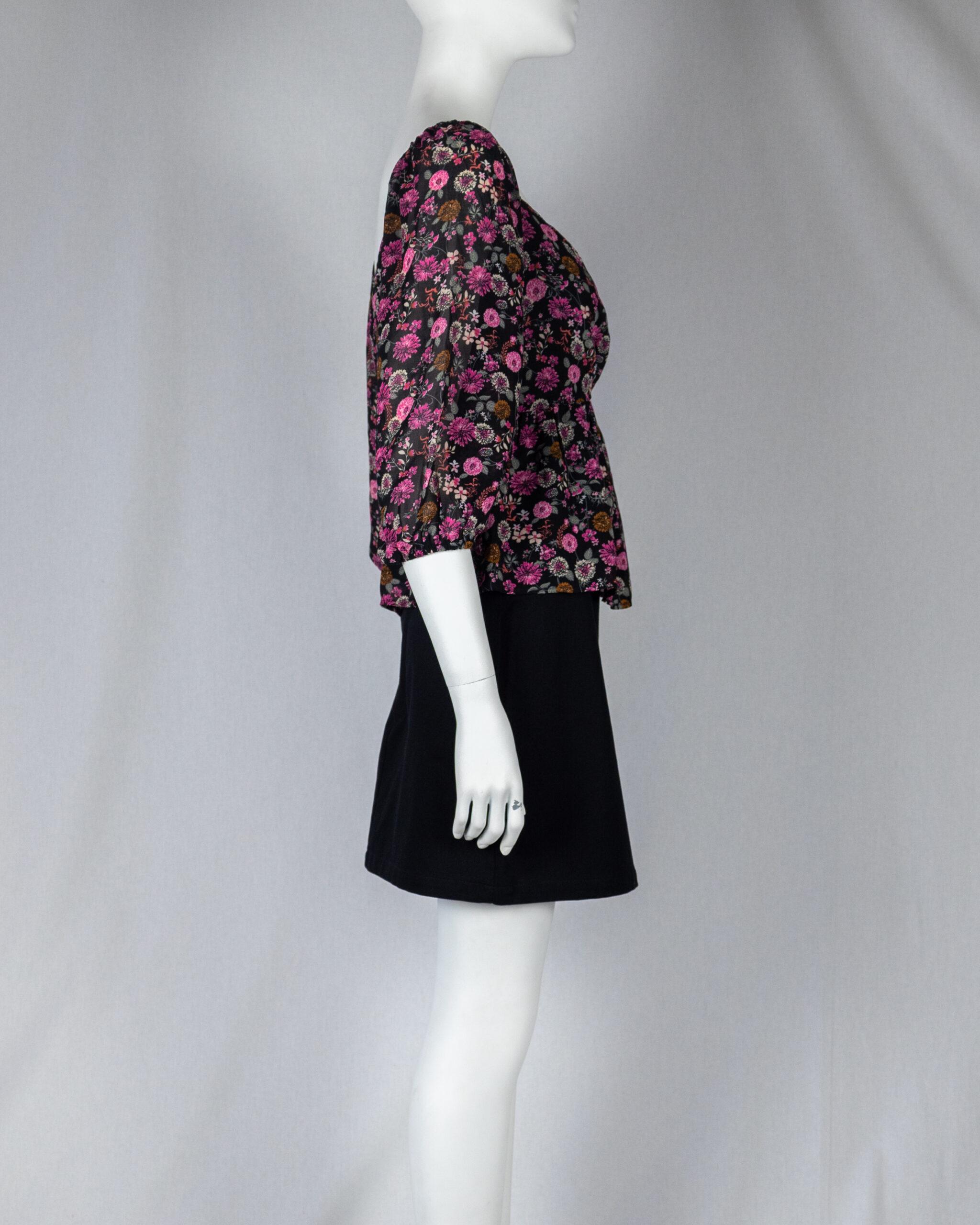 The floral pattern adds a touch of romance and charm to the blouse, making it perfect for both casual and semi-formal occasions. It’s a versatile piece that can be paired with skirts, trousers, or jeans depending on the desired look.