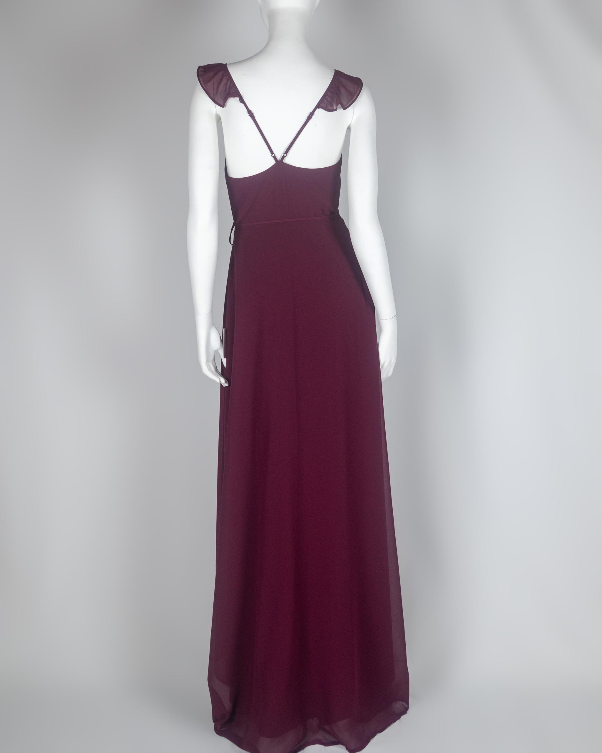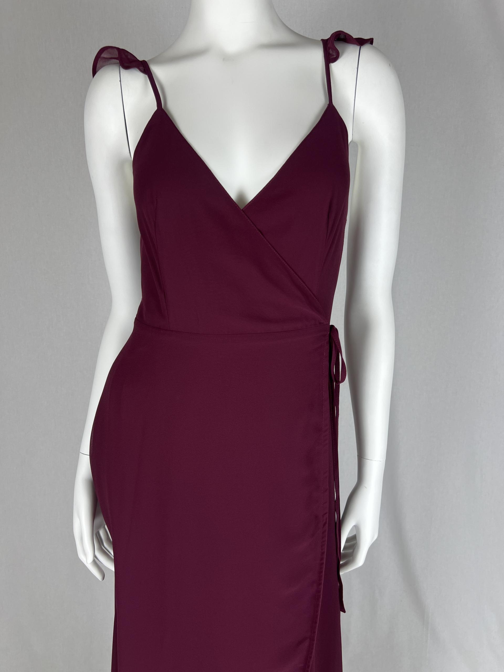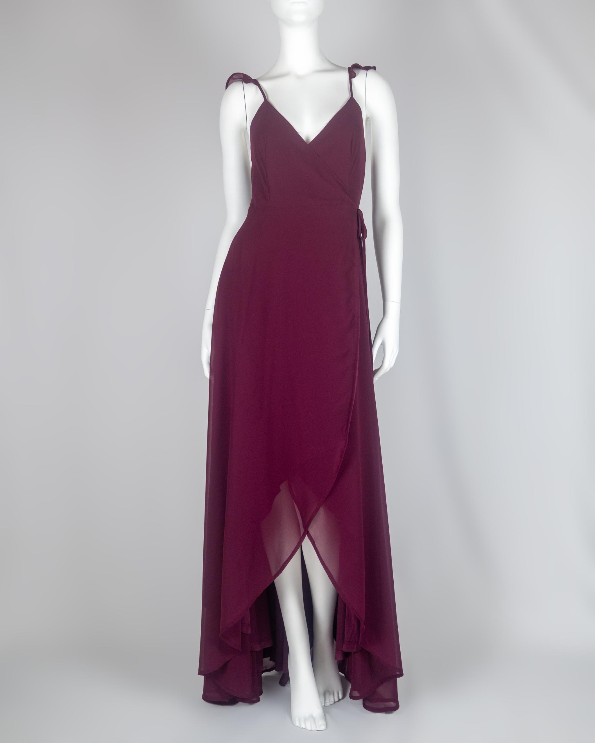 Toast to the weekend in the Lulus Here’s to Us Burgundy High-Low Wrap Dress! Breezy woven fabric sweeps over a sleeveless wrap bodice with adjustable spaghetti straps, modified racerback, and tying waist sash. High-low maxi skirt has a front slit and rounded hem.