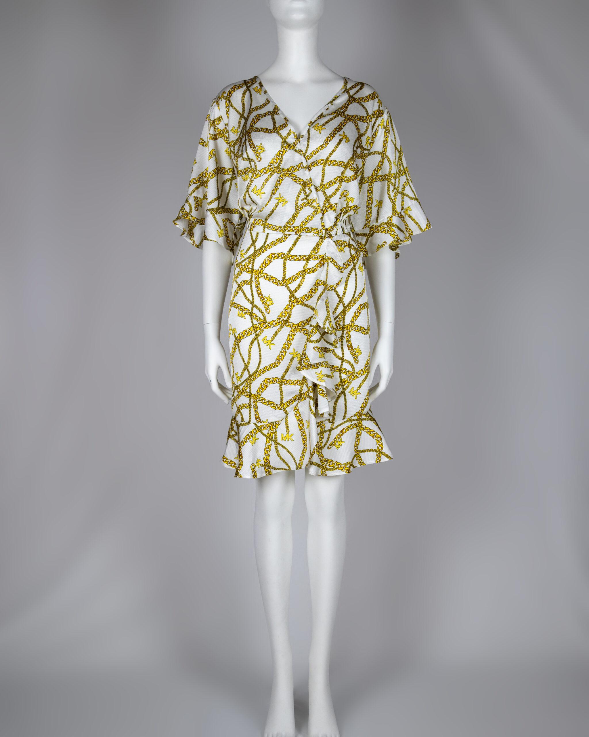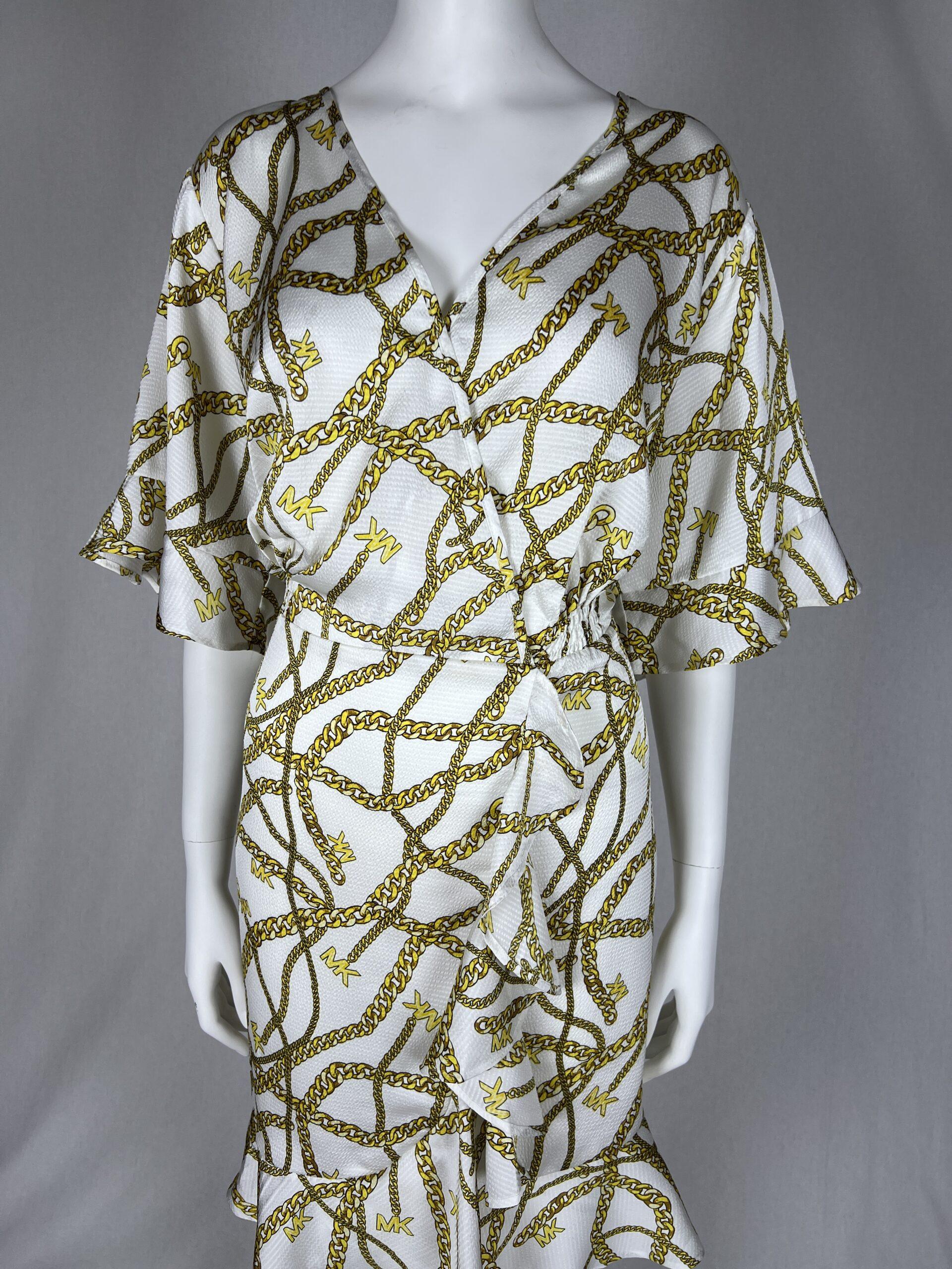 A chic logo chain print lends a lux look to this plus size dress from MICHAEL Michael Kors, a polished pick for any day of the week.