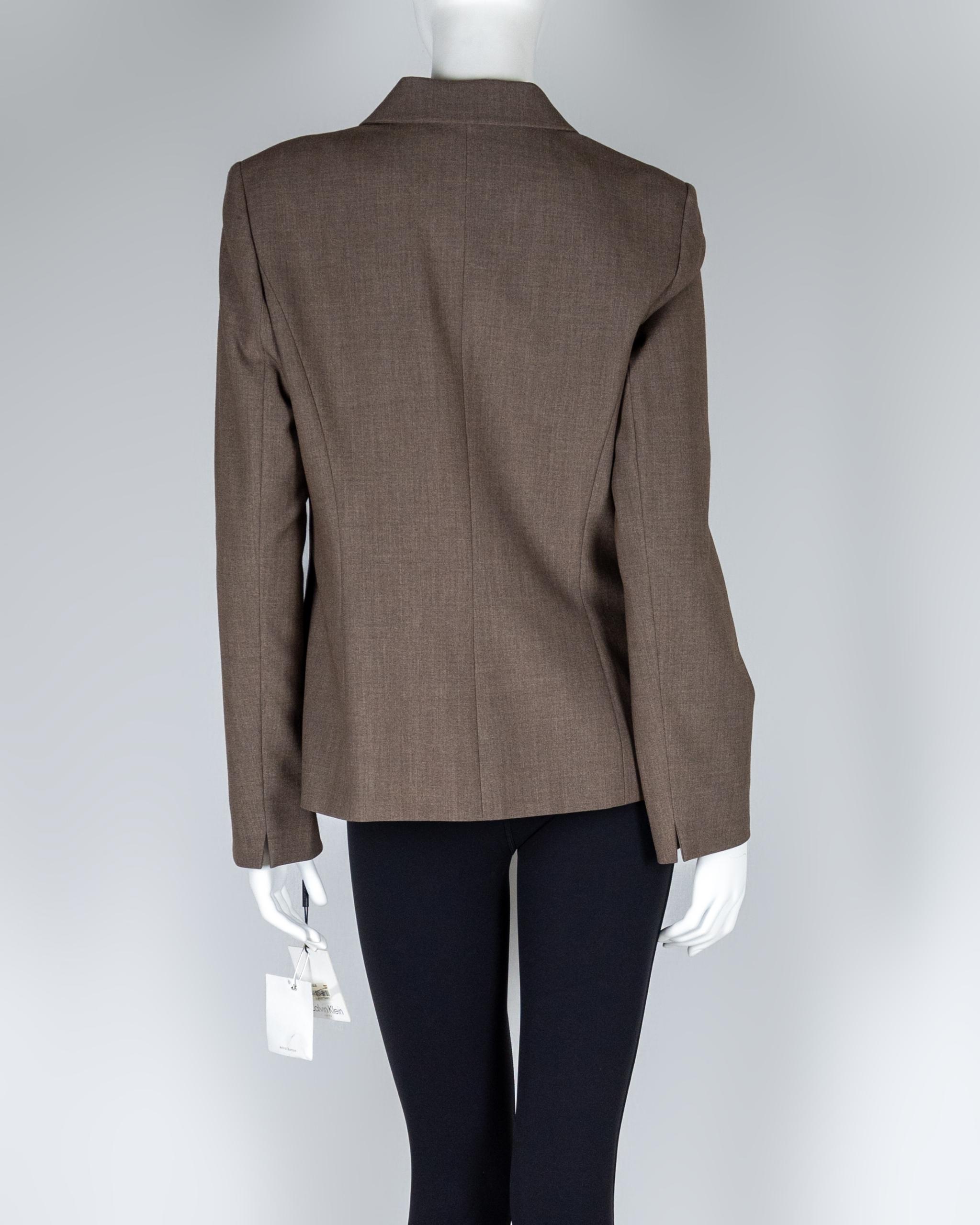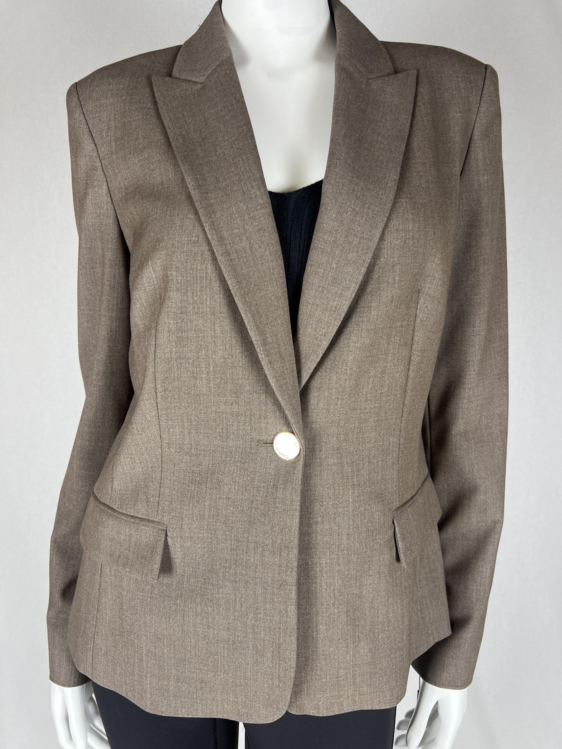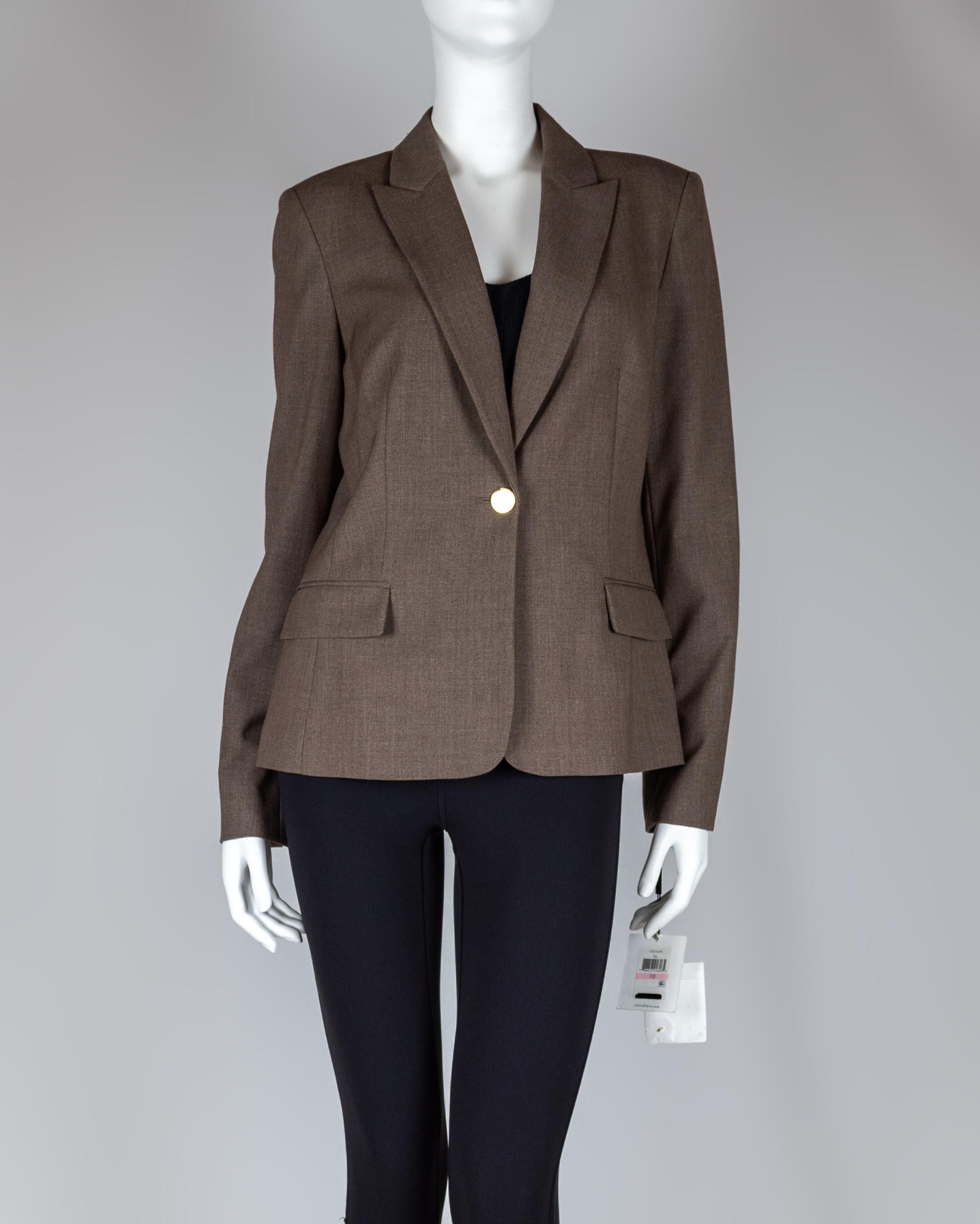 Calvin Klein takes your career look up a notch with this classic blazer, a professional pick featuring a single button closure at the front.