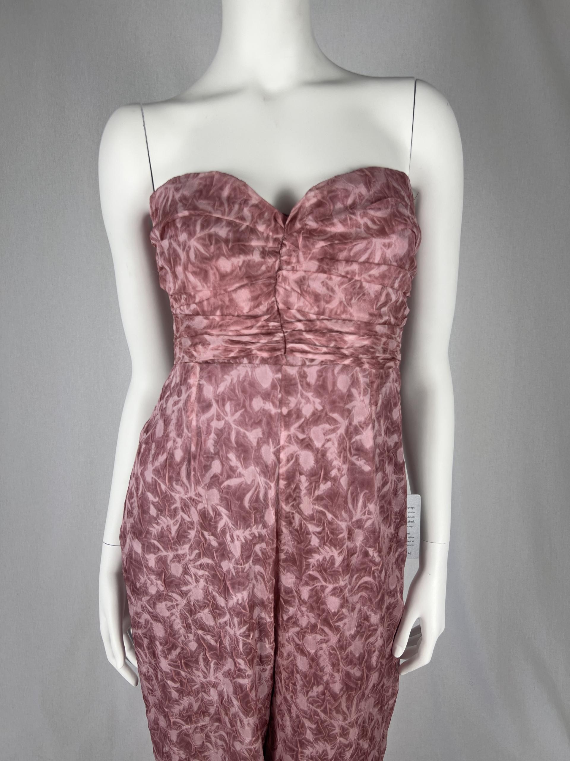Make it a romance for the ages with the Lulus Lasting Love Mauve Organza Ruched Strapless Wide-Leg Jumpsuit! Textured woven organza (with a floral-inspired design throughout) shapes this dreamy jumpsuit that has a strapless neckline (with no-slip strips) and a ruched bodice with hidden side boning. Two long sashes tie together at the waist to create a lovely bow at the back. The flowy wide legs pants end at ankle-length hems. Hidden back zipper/clasp.