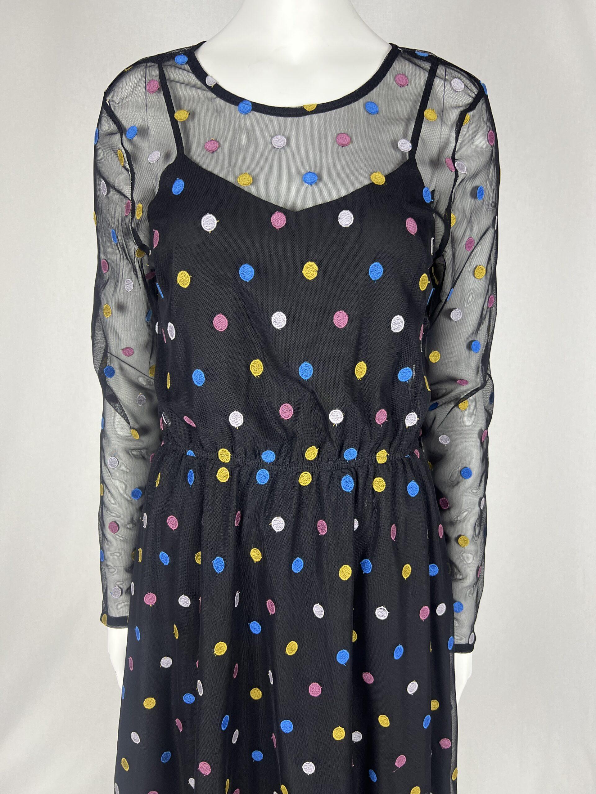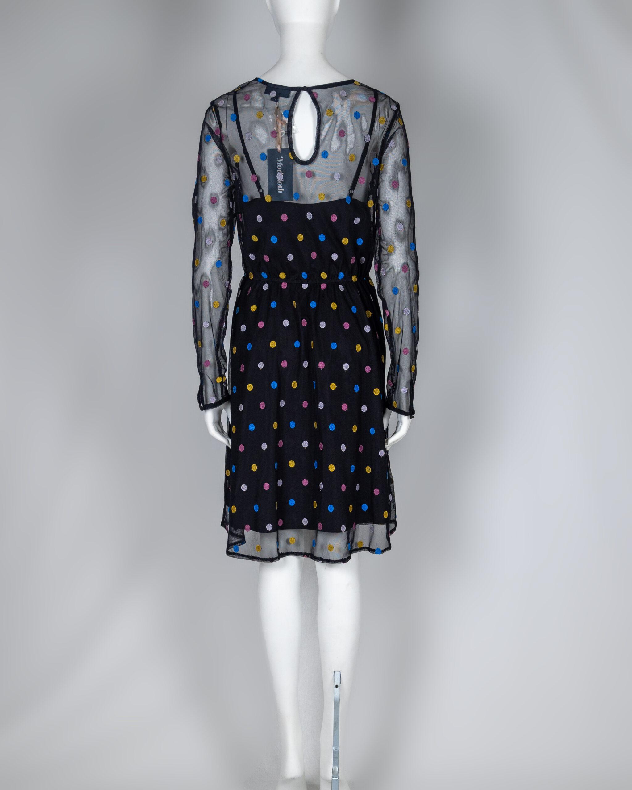 Steal second glances at the next soiree when you show up wearing this black, long sleeve dress! This ModCloth label frock’s back keyhole, elasticized waist, and slip lining make amazing enhancements to its polka dot mesh. Such a sweet score!