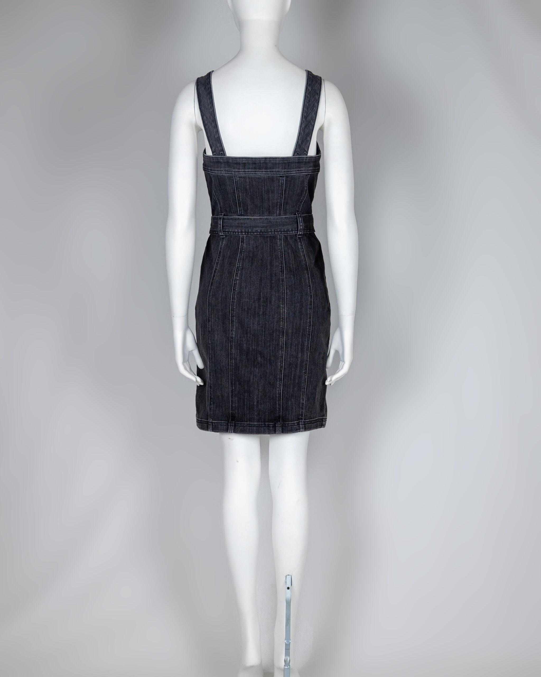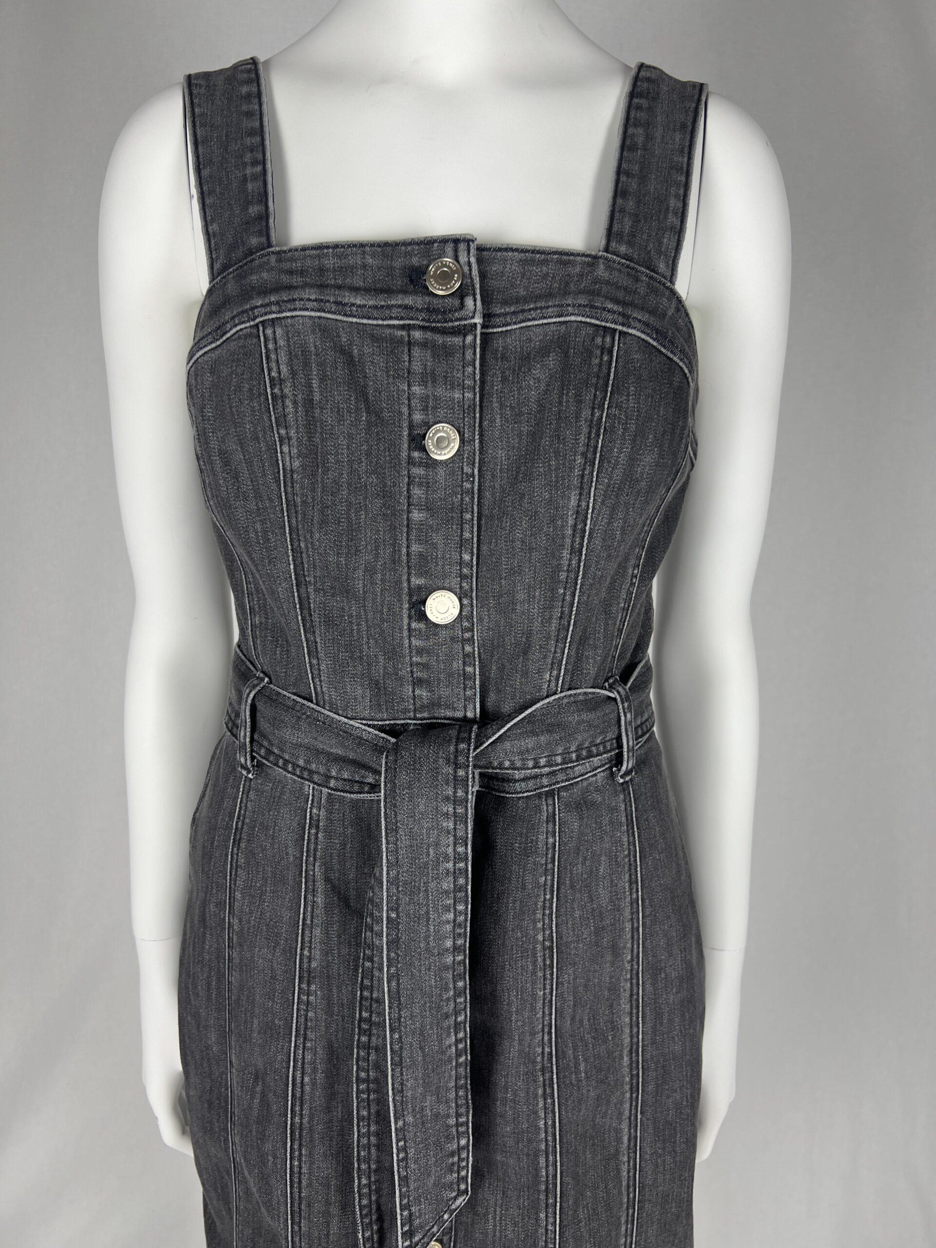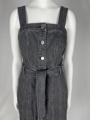 This strappy denim dress is perfect for casual days. Wear it year ’round, with a turtleneck on cool days or as a sundress when it’s warm. The vertical seam detail and tie belt add flattering shape to the style.