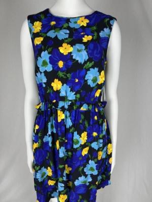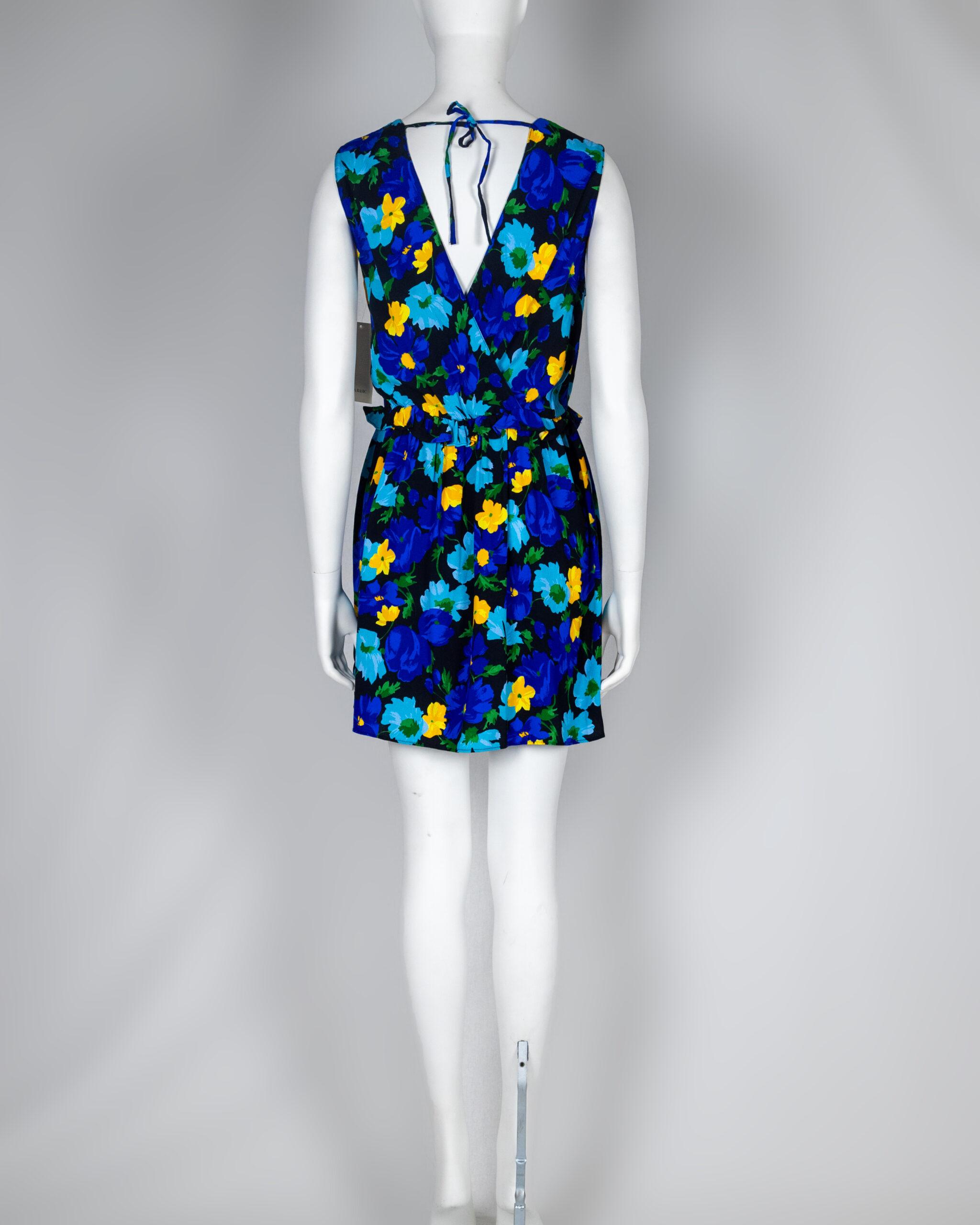 This blue floral mini dress features a vibrant shade of blue as its base color, adorned with intricate floral patterns in various hues. The floral designs add a delicate and feminine touch to the overall look, making it a popular choice for spring and summer occasions.