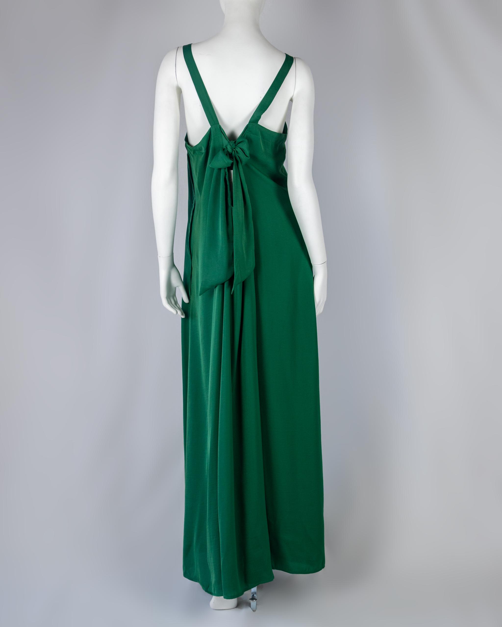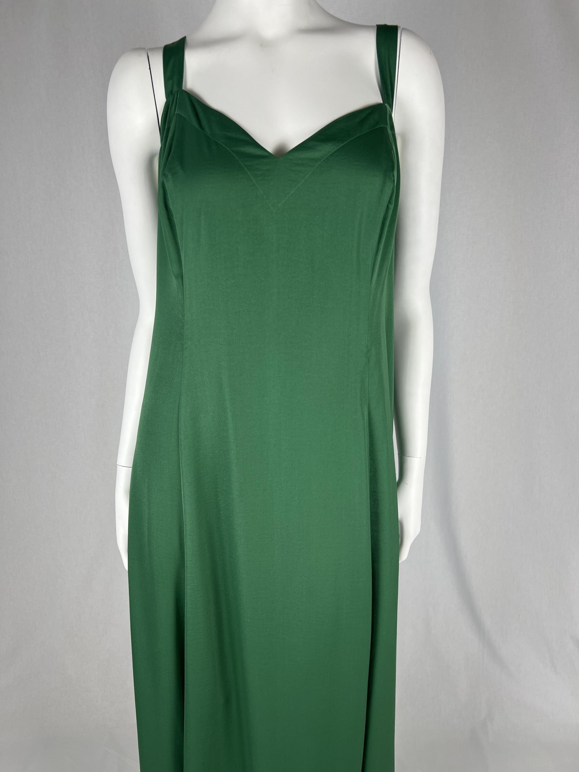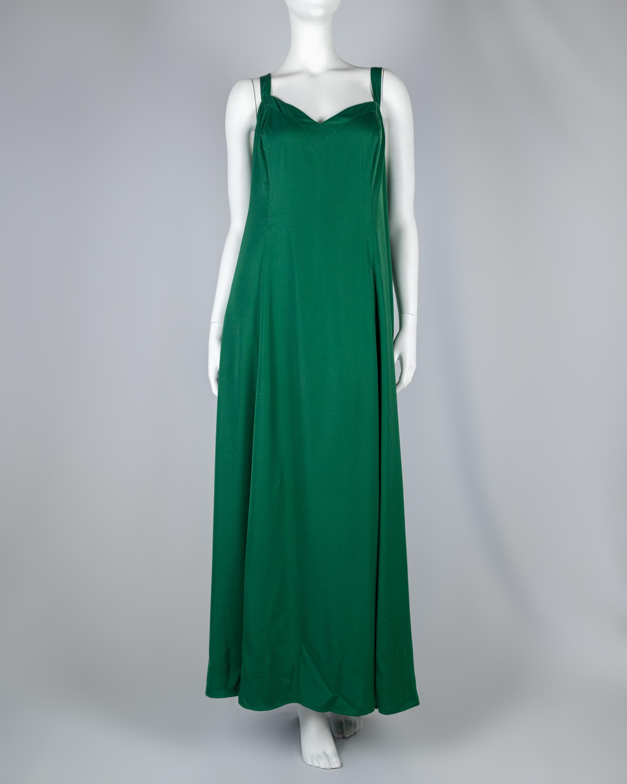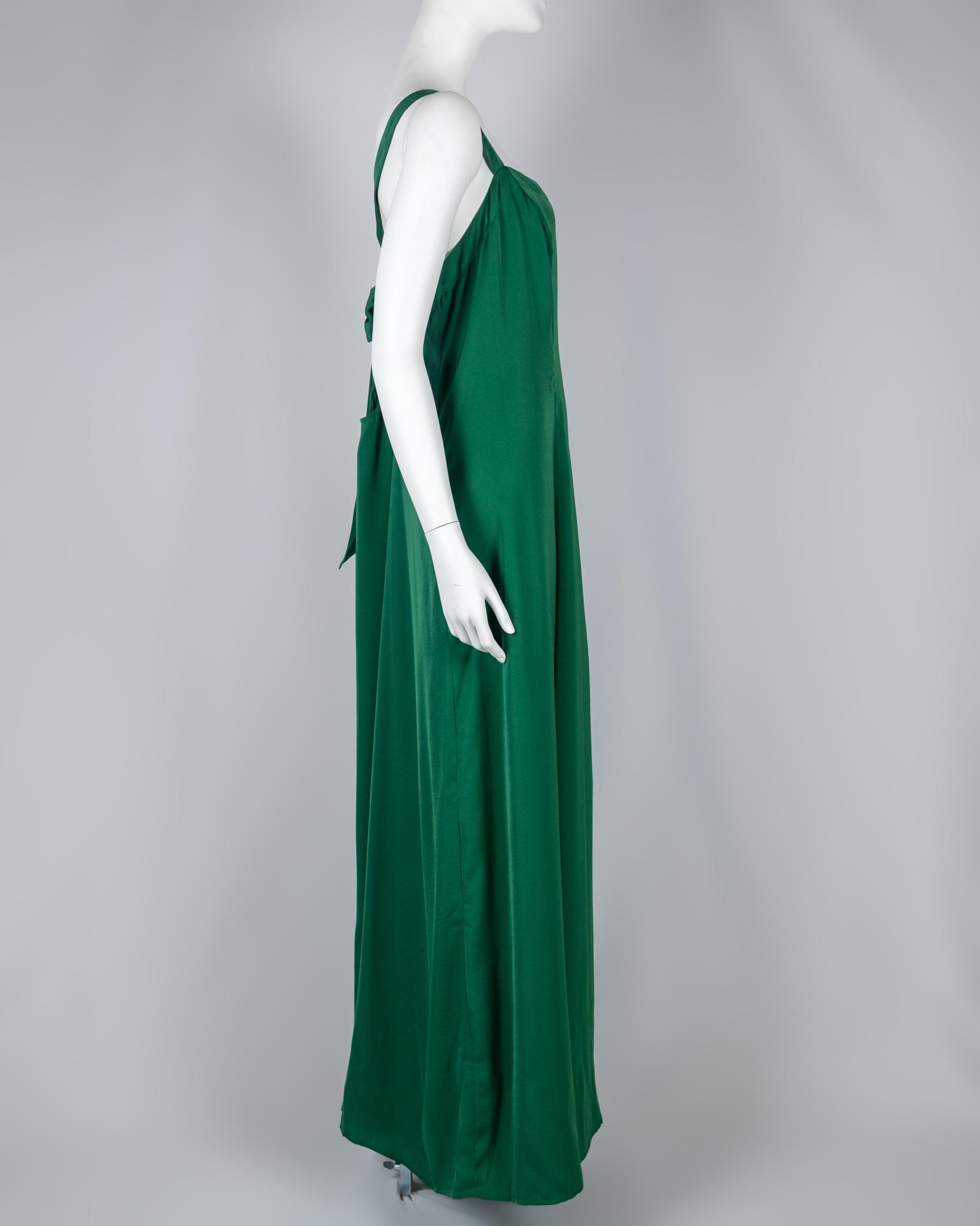 This green sleeveless maxi dress features a flowing, floor-length design that is both elegant and comfortable. The sleeveless style accentuates the shoulders and arms, making it perfect for warmer weather or formal occasions. The maxi length ensures the dress drapes gracefully over the body, creating a flattering silhouette. Overall this dress combines style with ease, making it a versatile and chic wardrobe choice.
