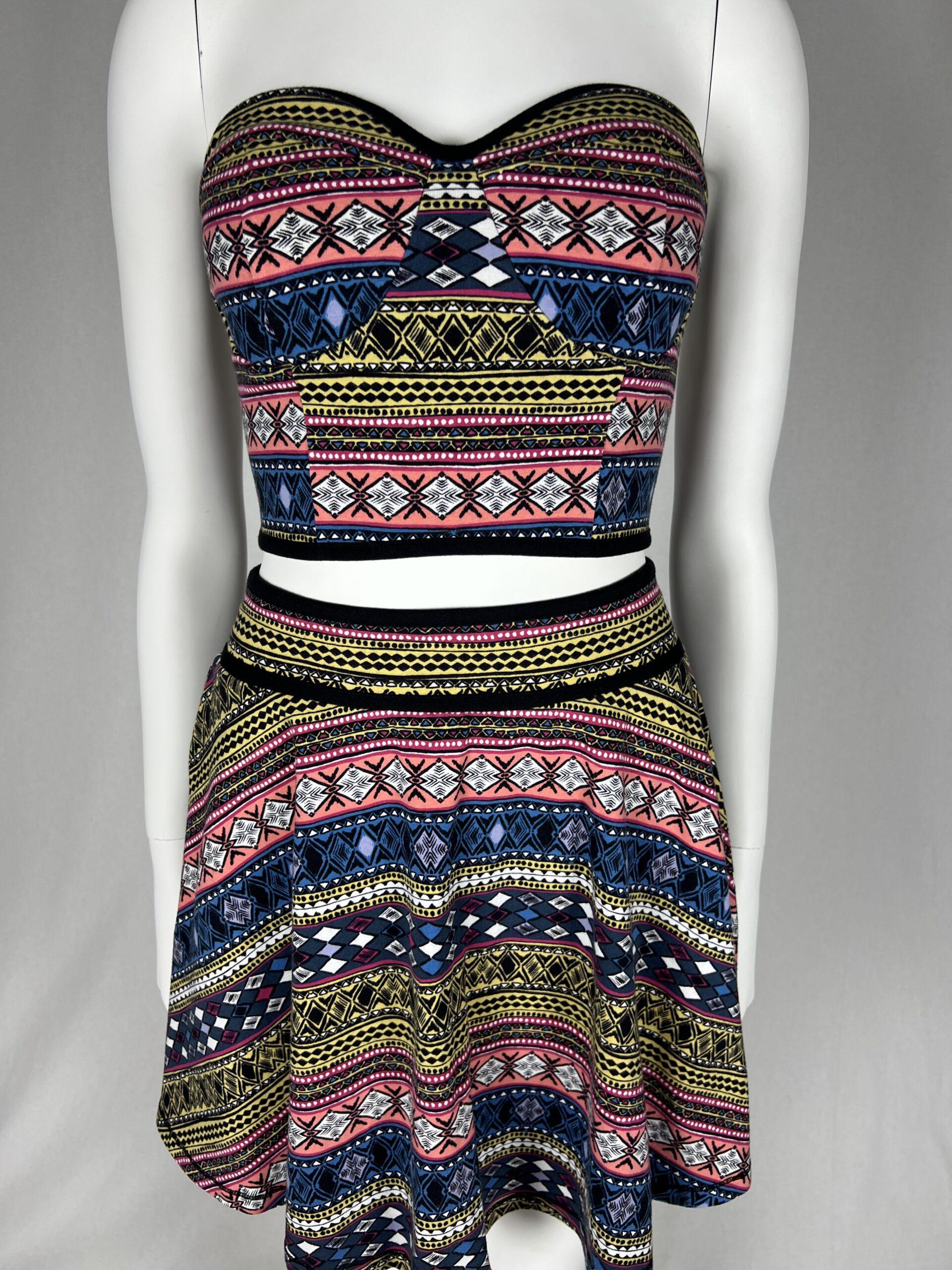 Tribal Print Crop Top & Skirt Set Size Medium